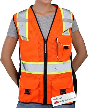 Dib Safety Vest For Women With Pockets Mesh Reflective Vest High Visibility Ansi Class 2 Made With 3m Reflective Tape Orange And Black S Amazon Com