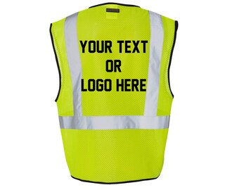 We have six different colors available. The process is easy. We make it easy to customize safety vests with your name company name or logo screen printed directly onto the vest.