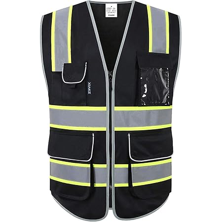 Jksafety 9 Pockets Class 2 High Visibility Zipper Front Safety Vest With Reflective Strips Meets Ansi Isea Standard X Large 901 Black Amazon Com