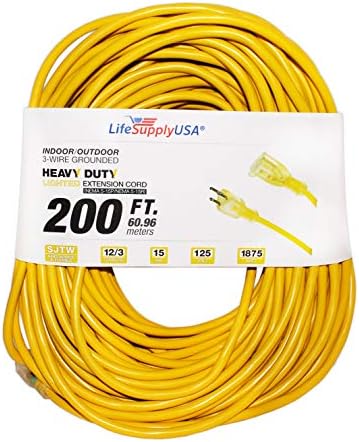 200 Ft Extension Cord 12 3 Sjtw With Lighted End Yellow Indoor Outdoor Heavy Duty Extra Durability 15 Amp 125 Volts 1875 Watts By Lifesupplyusa Amazon Com